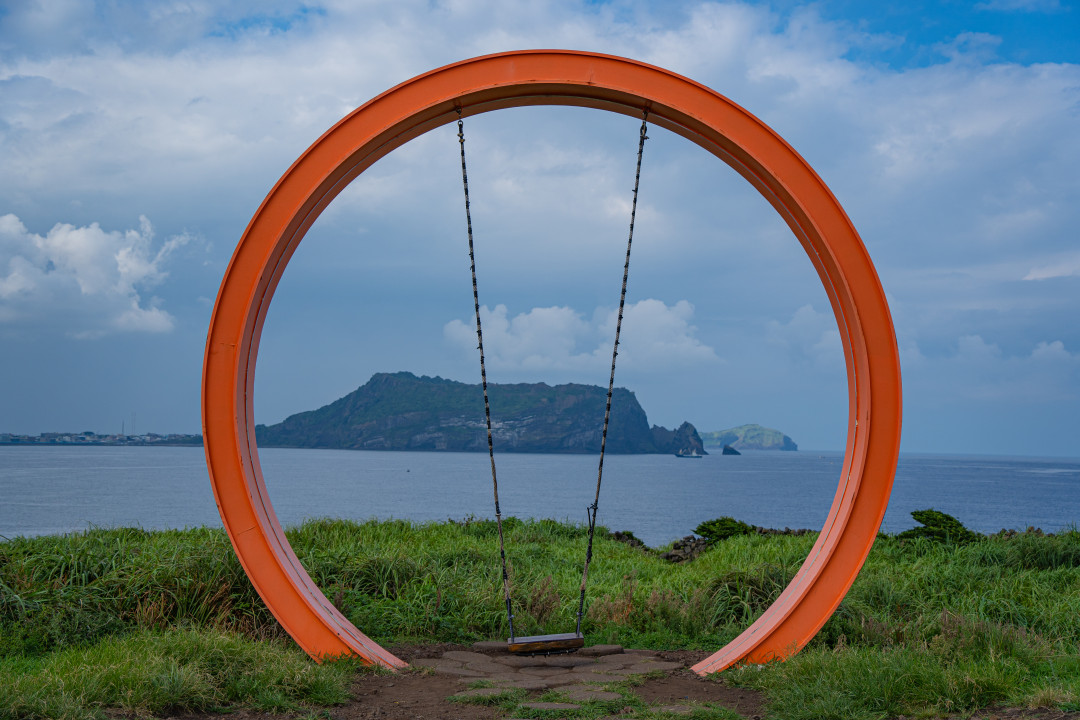 성산일출봉을 배경으로 해서 만든 조형물인거 같은데