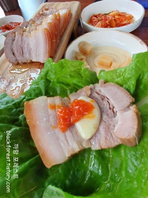 기본 밑반찬은 새우젓 / 김치 / 깍두기 / 상추 / 쌈장 입니다.