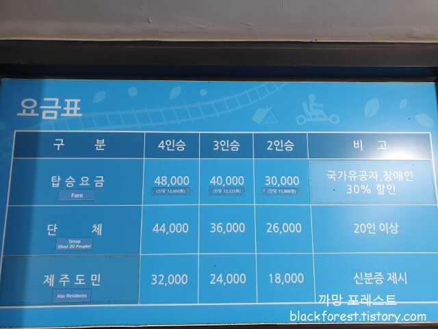 * 인원별로 금액이 구분되지만 탑승하는 레일 바이크는 4인용입니다.