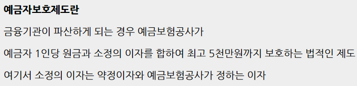 ex) 우체국 예적금의 경우 100% 보호 (정부 보증)