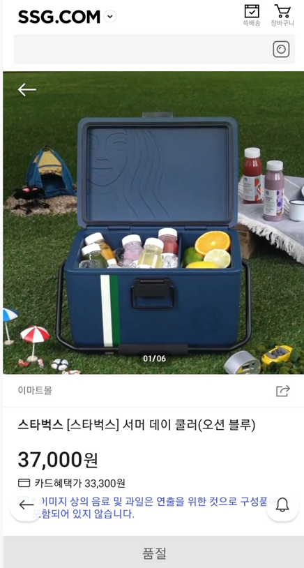 SSG 닷컴에서는 3만 7천원으로 쿨러박스를 구매할 수 있습니다.