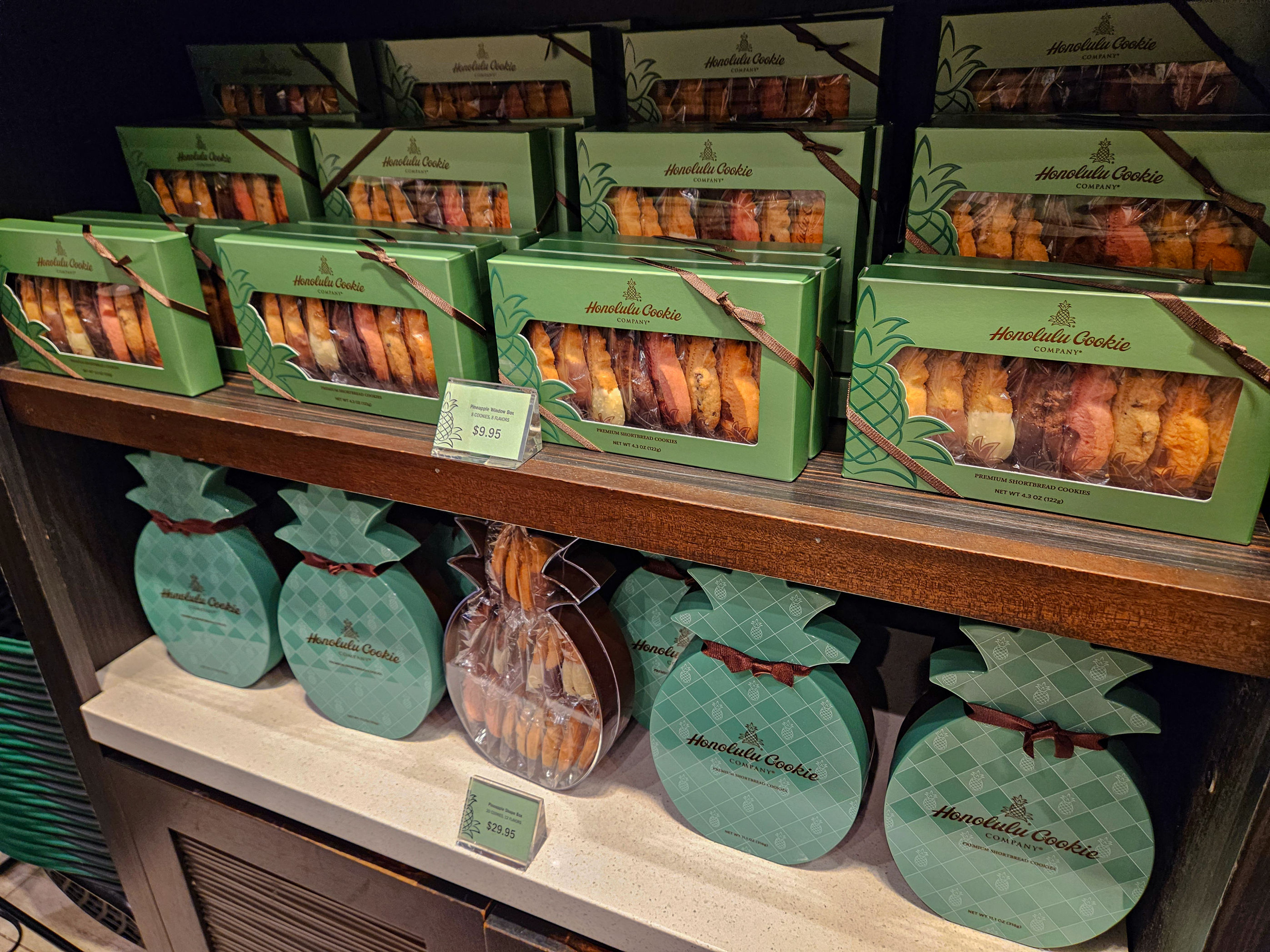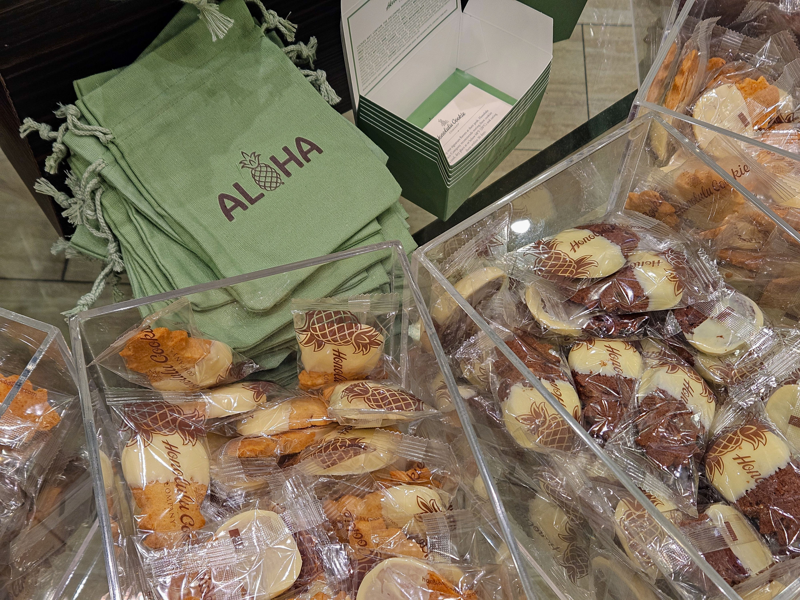 호놀룰루 쿠키파인애플 모양의 독특한 디자인으로 유명한 하와이 대표 쿠키 파인애플, 망고, 코나 커피, 마카다미아 같은 천연 재료 사용하여맛과 제품 구성이 다양해서 하와이 선물로 괜