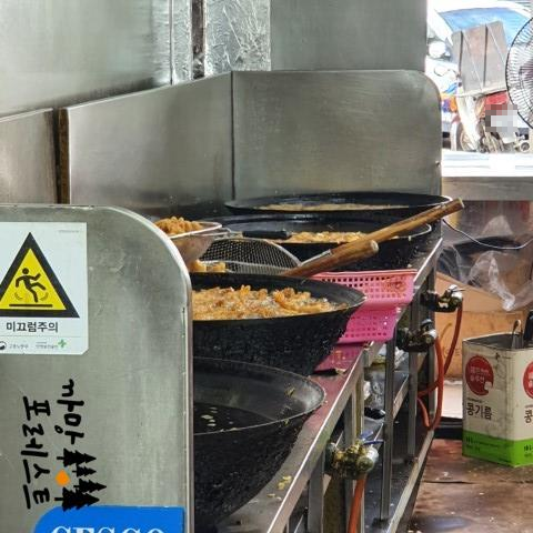 실시간으로 튀겨지고 있는 닭강정...