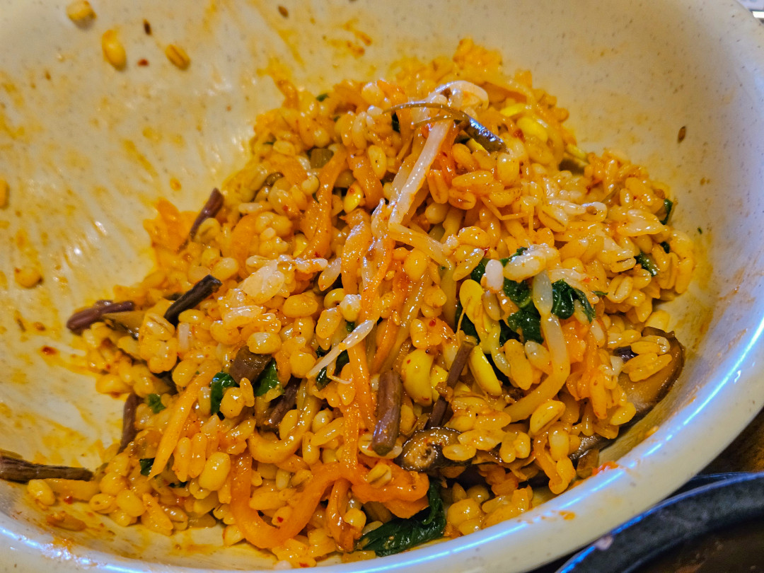각종 채소(당근, 콩나물, 시금치, 버섯)를